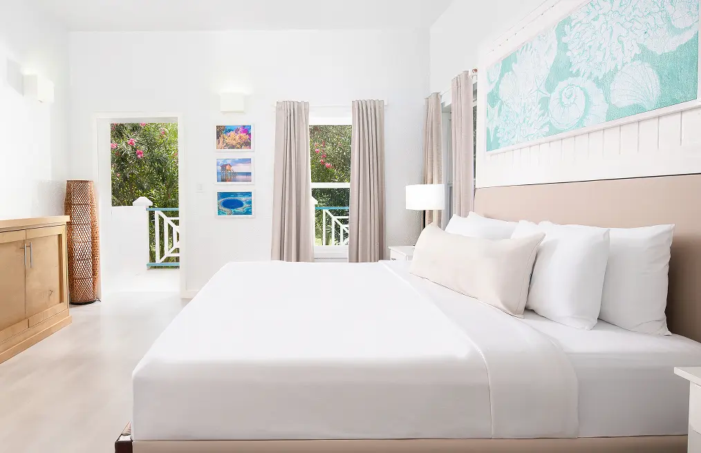 An inviting cabana-style hideaway embraced by nature. Soft natural light and tropical foliage set the tone for a calming stay. This cozy suite offers privacy and tranquility, ideal for those seeking a peaceful escape.